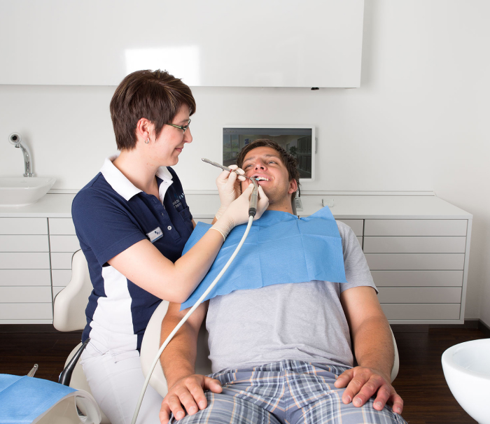 Natürlich widmen sich unsere Zahnärzte in besonderem Maße auch der Prophylaxe. Zum regelmäßigen Kontrolltermin sind Sie in unserer Praxis immer gerne gesehen. In Verbindung mit der Zahnpflege zu Hause leisten Sie so einen aktiven Beitrag zur Zahngesunderhaltung.