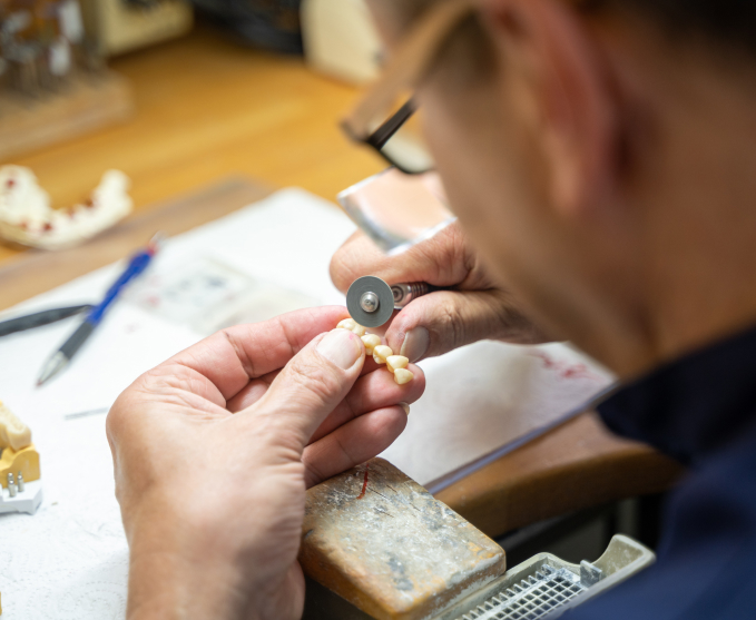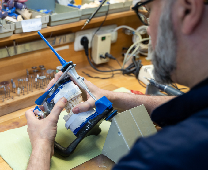 Somit gestaltet er jeden Zahnersatz zu einem handgefertigten, kleinen Meisterwerk – ob Kronen, Brücken, Prothesen oder Teil-Prothesen.